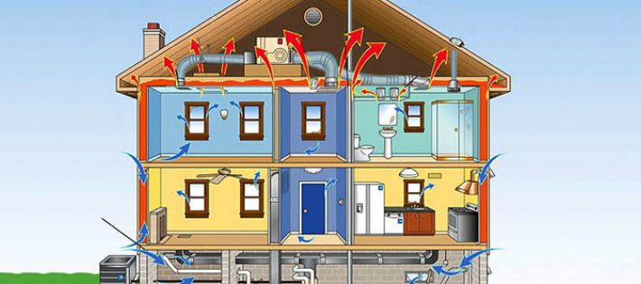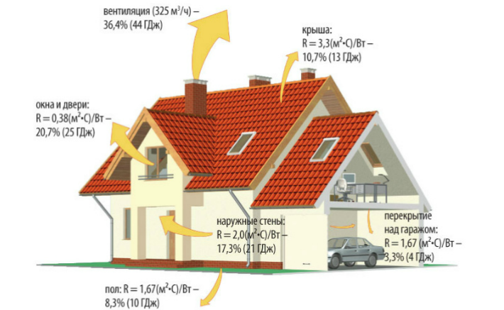 Тепло почти не перемещается горизонтально, так, как оно это делает в вертикальном направлении. Следовательно, если дом не имеет теплоизоляции на стенах, но имеет абсолютно воздухонепроницаемое уплотнение, разница в теплопотерях будет незначительная. Однако, если не сделана теплоизоляция потолков, ситуация в корне меняется.