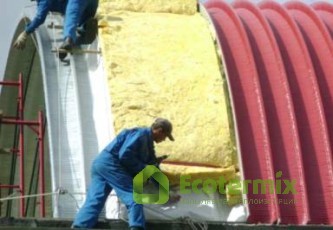 У этого метода есть серьезное ограничение: площадь ангара. Желательно все работы закончить за 1-2 дня, чтобы воздух между волокнами ваты не успел впитать воду. Если площадь поверхности конструкции слишком большая, то использование минваты в качестве утеплителя будет бессмысленным.